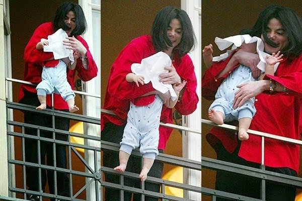 2. Dangles his 9-month-old son, Prince Michael II (“Blanket”), over the balcony railing
